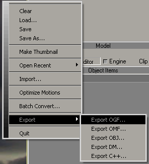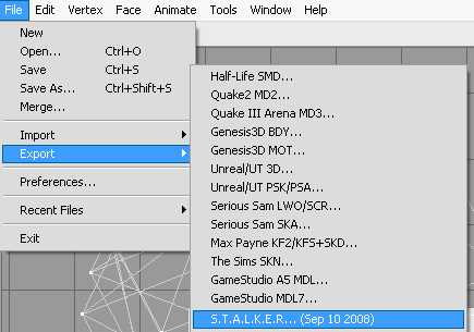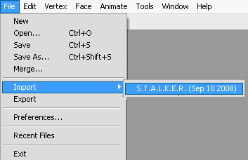 2)Открываем редактор и переходим в меню File -> import -> S.T.A.L.K.E.R. (Sep 10 2008) и указываем путь к модели (.ogf).
